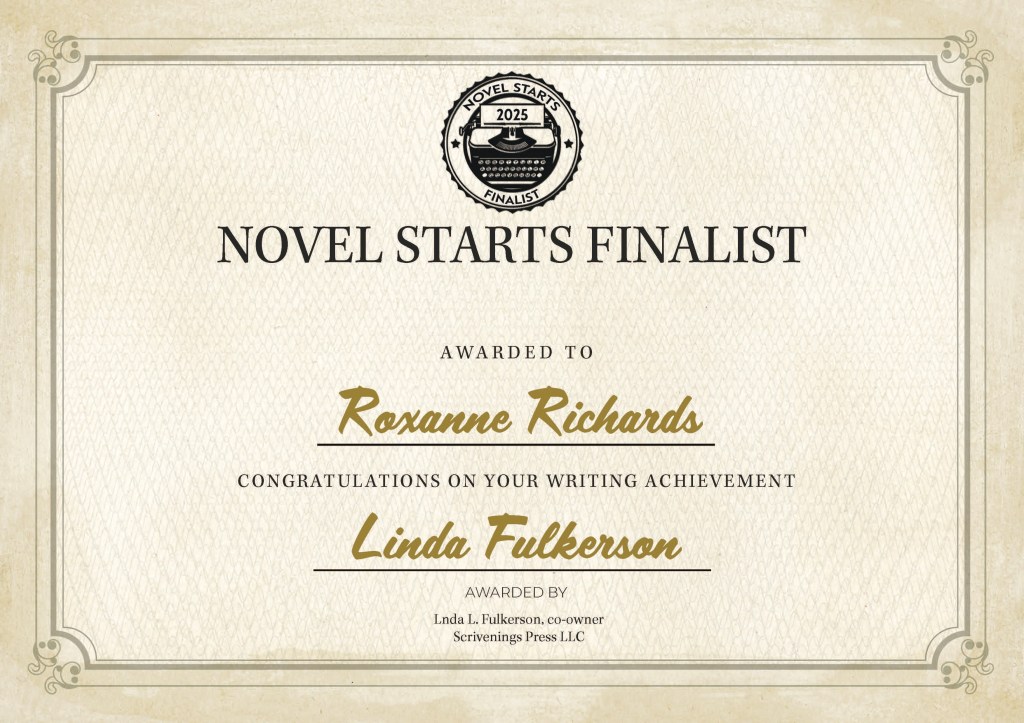 Novel Starts Contest Posted bywritingrichardsMarch 2, 2026Posted inWritingTags:Historical Fiction, Strength, Writing While awaiting to announcement of winners, I received this in my email today: Share this: Share on X (Opens in new window) X Share on Facebook (Opens in new window) Facebook Email a link to a friend (Opens in new window) Email Like Loading... Published by writingrichards Writer, doctor, dog mom and real mom too. View more posts